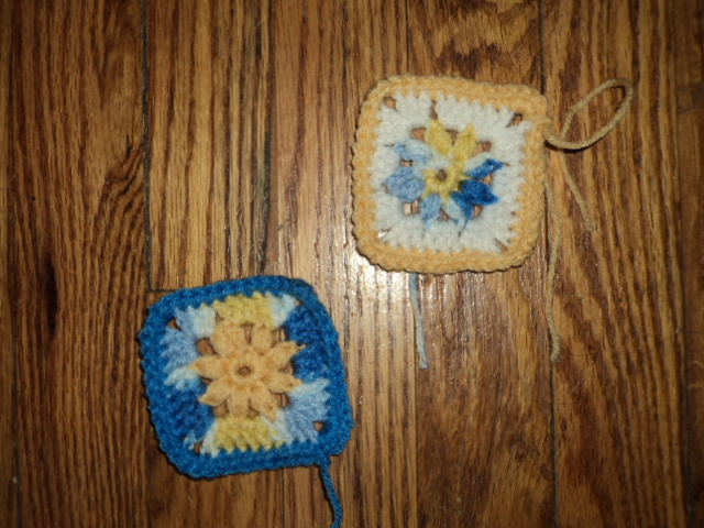 To continue the spring-y love, here are the two latest blocks I've completed for the crochet a-long on Ravelry. This is one of the two colorways I've chosen, but I think this one is my favorite. And it goes along well with the springtime feel of the day.